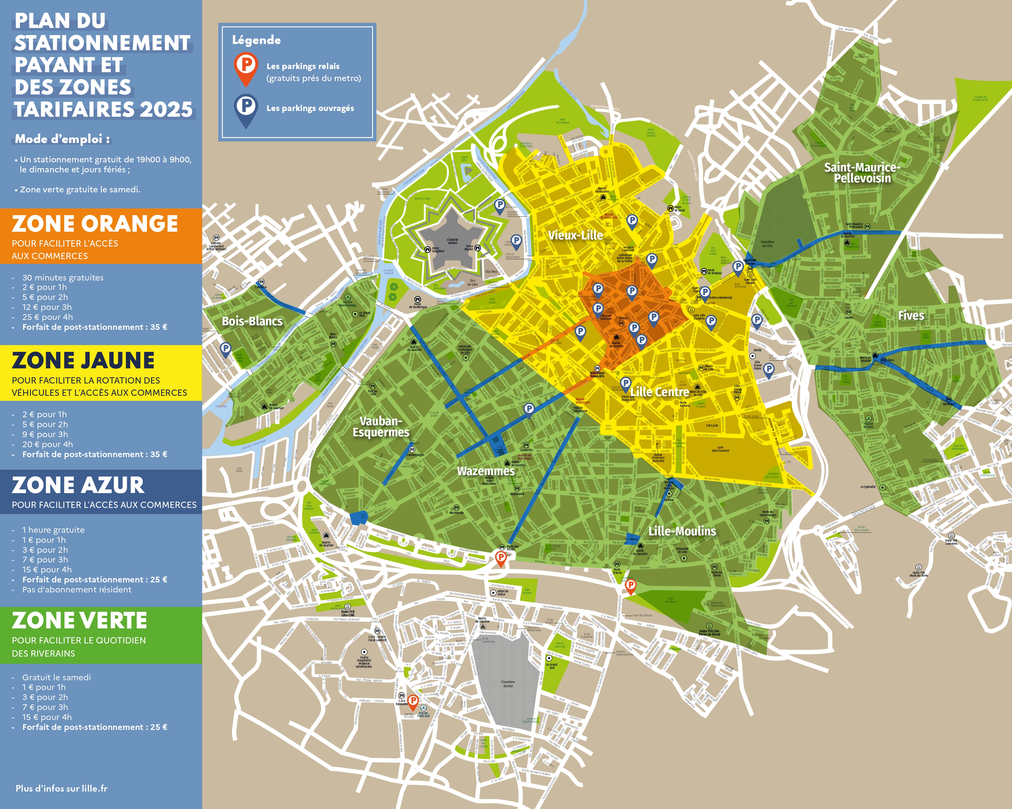 Vous trouverez ci-dessous le plan de stationnement payant et des zones tarifaires 2025 :